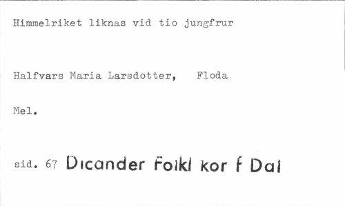 //// Himmelriket liknas vid tio jungfrur //// Halfvars Maria Larsdotter, Flöda Mel. //// sid. 67 Dicarider Folkl kor f Dal ////