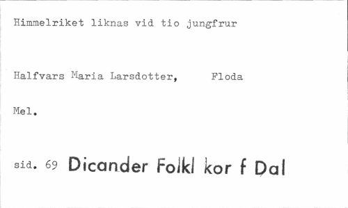 //// Himmelriket liknas vid tio jungfrur //// Halfvars Maria Larsdotter, Ploda //// Mel. //// sid. 69 Dicarider Folkl kor f Dal ////
