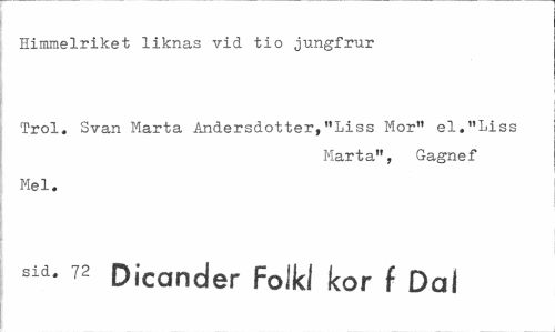 //// Himmelriket liknas vid tio jungfrur //// Trol. Svan Marta Andersdotter,"Liss Mor" el."Liss //// Marta", Gagnef //// Mel. //// sid. 72 Dicander Folkl kor f Dal ////