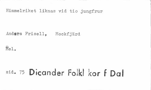//// Himmelriket liknas vid tio jungfrur Andtsrs Friseli, Mockfjärd //// Mel. //// ^d. 75 Dicander Folk! kor f Dal ////