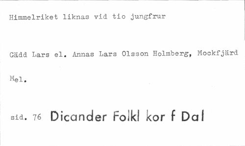 //// Himmelriket liknas vid tio jungfrur //// Gädd Lars el. Annas Lars Olsson Holmberg, Mockfjärd Mel. //// sid. 76 Dicarider Folkl kor f Dal ////