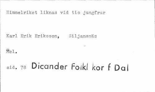 //// Himmelriket liknas vid tio jungfrur //// Karl Erik Eriksson, Siljansnäs ftel. //// sid. 78 Dicander Folk! kor f Dal ////