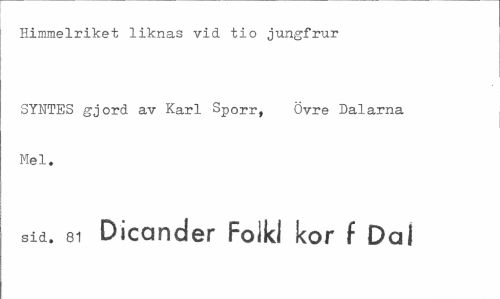 //// Himmelriket liknas vid tio jungfrur //// SYNTES gjord av Karl Sporr, Övre Dalarna Mel. //// sid. so Dicander Foikl kor f Dal ////