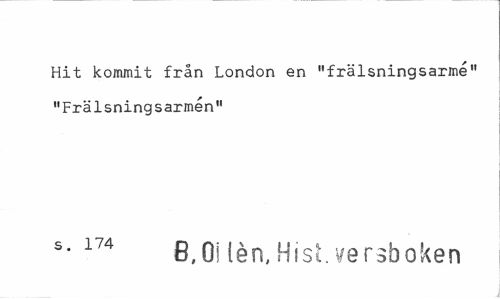 //// Hit kommit från London en "frälsningsarme" "Frälsningsarmén" //// s- 174 B,Oi len, Hist versboken ////