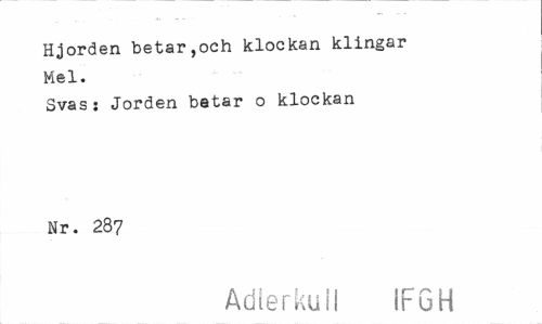 //// Hjorden betar,och klockan klingar Mel. //// Svas: Jorden betar o klockan Nr. 287 //// Adlerkull IFG H ////
