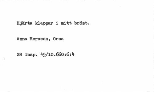//// Hjärta klappar i mitt bröst. Anna Moraeus, Orsa SR insp. 49/10.660:6:4 ////