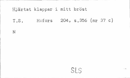 //// Hjärtat klappar i mitt bröst //// T.S. H:fors 204, s.356 (nr 37 c) //// N //// SLS ////