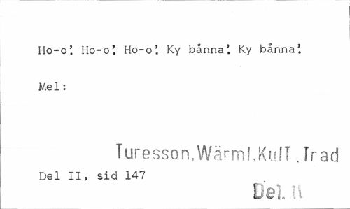 //// Ho-o'. Ho-o'. Ho-o'. Ky bånna'. Ky bånna'. Mel: //// Turesson,WärmhKulT .Trad //// Del II, sid 147 ////