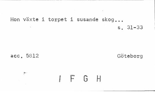 //// Hon växte i torpet i susande skog... //// s. 31-33 //// acc. 5812 Göteborg //// / F G H ////