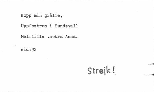//// Hopp min grålie, Uppfostran i Sundsvall Mel: lilla vackra Anna. //// sid:32 //// Strejk! ////