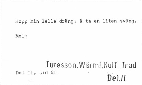 //// Hopp min lelle dräng, å ta en liten sväng, Mel: //// Turesson. Wärml.KulT Jrad //// Del II, sid 61 - //// D ellt ////
