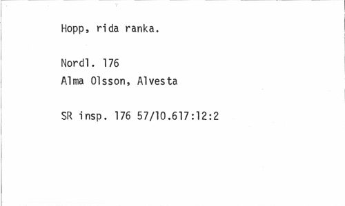 //// Hopp, rida ranka. Nordl. 176 //// Alma Olsson, Alvesta SR insp. 176 57/10.617:12:2 ////
