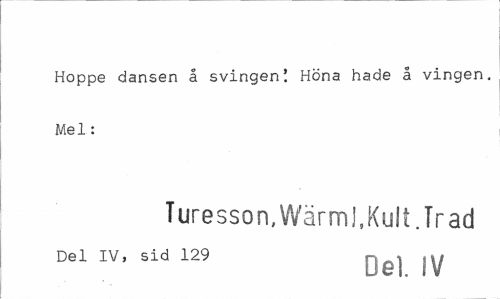 //// Hoppe dansen å svingen! Höna hade å vingen. Mel: //// Turesson, Wärml,Kult .Trad //// Del IV, sid 129 , . , ,y ////