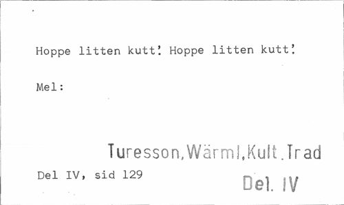 //// Hoppe litten kutt! Hoppe litten kutt! Mel: //// Turesson, Wärml, Kult. Trad //// Del IV, sid 129 - , |W //// Del. IV ////