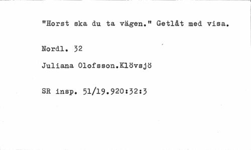 //// "Horst ska du ta vägen." Getlåt med visa. Nordl. 32 //// Juliana Olofsson.Klövsjö SR insp. 51/19.920:32:3 ////