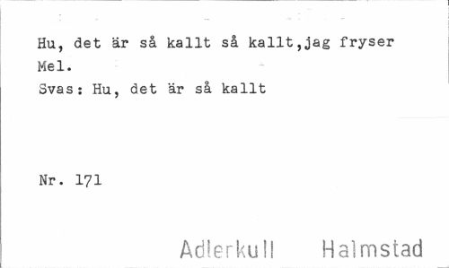 //// Hu, det är så kallt så kallt,jag fryser Mel. //// Svas: Hu, det är så kallt Nr. 171 //// Adlerkull Halmstad ////