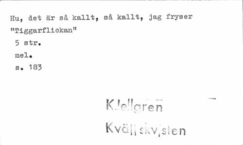 //// Hu, det är så kallt, så kallt, jag fryser "Tiggarflickan" 5 str. mel» s. 183 //// f/( Fl — //// »v ekoren Kvo[s sKv^fen ////
