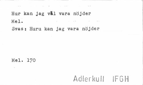 //// Hur kan jag vil vara nöj der Mel. //// Svas: Huru kan jag vara nöjder Mel. 170 //// AdierkuJ] IF6H ////