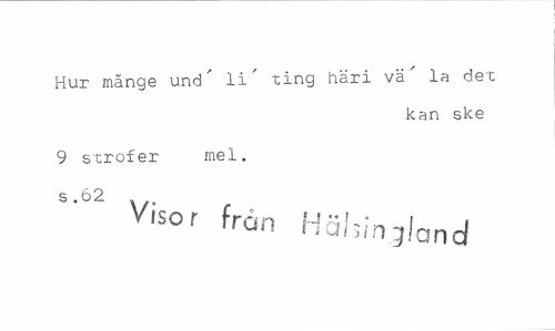 //// Hur mänge und' li' ting häri vä' la det //// kan ske //// 9 strofer mel. //// S'°2 Visor frän Hälsingland ////