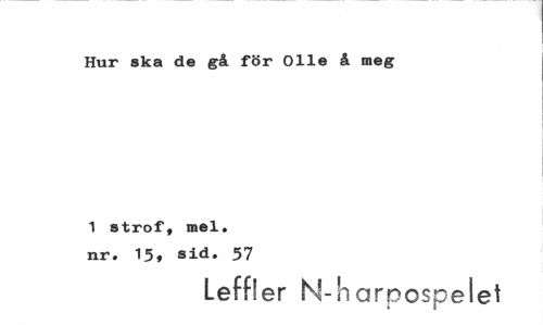 //// Hur ska de gå för Olle å meg //// 1 strof, mel. nr. 15* sid. 57 //// Leff! er N-harpospelet ////
