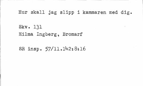 //// Hur skall jag slipp i kammaren med dig. Skv. 131 //// Hilma Ingberg, Bromarf SR insp. 57/11.11+2s8:16 ////