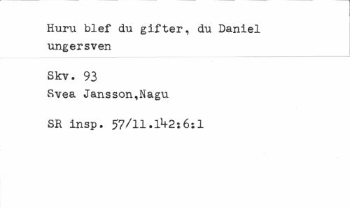 //// Huru blef du gifter, du Daniel ungersven //// Skv. 93 //// Svea Jansson,Nagu SR insp. 57/11.1^2:6:1 ////