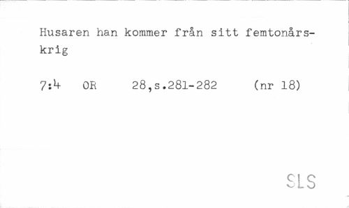 //// Husaren han kommer från sitt femtonårskrig //// 7:*+ OR 28, s. 281-282 (nr 18) //// SLS ////