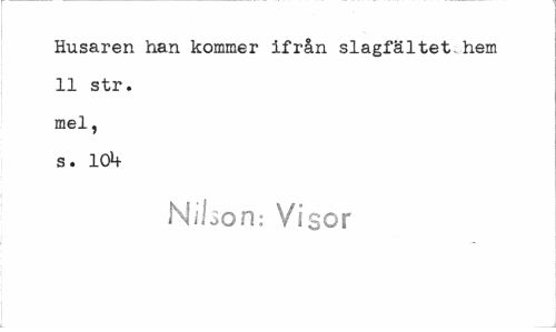 //// Husaren han kommer ifrån slagfältet-hem 11 str. mel, s. 101+ //// Nilson: Visor ////