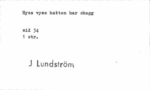 //// Hyss vyss katten har skegg //// sid 34 1 str. //// J Lundström ////