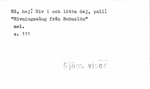 //// Hå, hej' Hiv i och lätta dej, palli "Hivningssång från Bohuslän" mel. s. 111 //// Sjörru visor ////