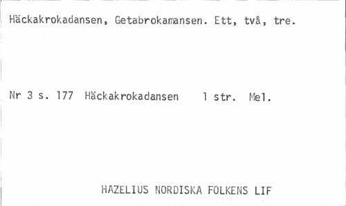 //// Häckakrokadansen, Getabrokamansen. Ett, två, tre. Nr 3 s. 177 Häckakrokadansen 1 str. Mel. //// HAZELIUS NORDISKA FOLKENS LIF ////
