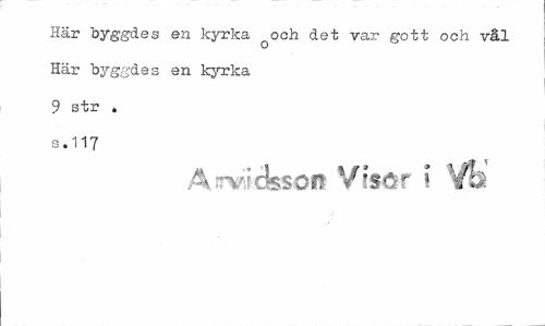//// Här byggdes en kyrka Qoch det var gott och val Här byggdes en kyrka 9 str » //// 3.117 //// Arvidsson Visor i Vb ////