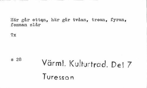 //// Här går ettqn, här går tvåan, trean, fyran, femman slår //// Tx //// Värml. Kulturtrad. Del 7 //// Turessan ////
