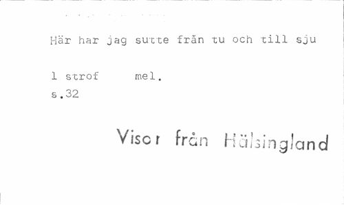 //// Här har jag sutte frän tu och till sju //// 1 strof mel. s.32 //// Viscr från Hälsingland ////