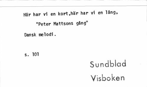 //// Här har vi en kort,här har vi en lång, //// "Peter Mattsons gång" Dansk melodi. //// s. 101 //// Sundblad Visboken ////
