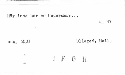 //// Här inne bor en hedersmor... //// s. 47 //// acc. 6001 Ullared, Hall. //// ~ i Fen ////