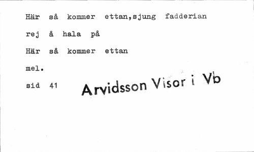 //// Här så kommer ettan,sjung fadderian //// rej å hala på //// Här så kommer ettan //// mel. ^ //// sid 41 Arvidsson Visor 1 Vd ////