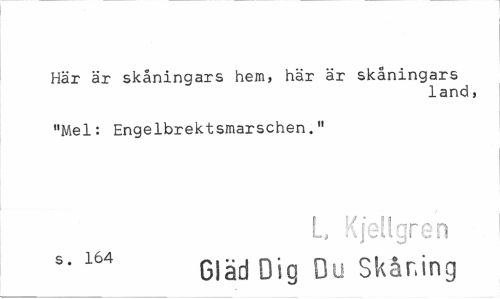 //// Här är skåningars hem, här är skåningars //// land, //// "Mel: Engelbrektsmarschen." //// i - j w 1 ,-j ii '-ij» n //// s' 164 Gläd Dig Du Skåning ////
