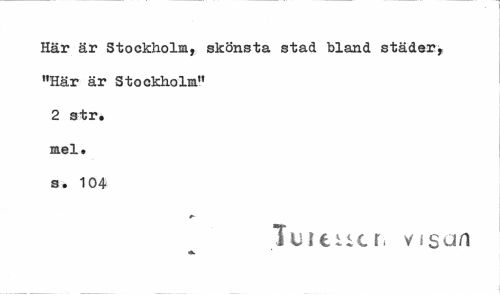 //// Här är Stockholm, skönsta stad bland städer, "Här är Stockholm" 2 str. mel. s. 104 //// Tureucr. visan //// a. ////