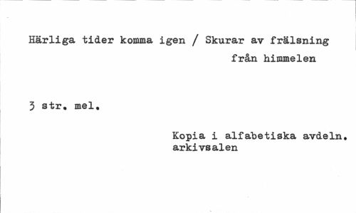 //// Härliga tider komma igen / Skurar av frälsning //// från himmelen //// 3 str. mel. //// Kopia i alfabetiska avdeln. arkivsalen ////