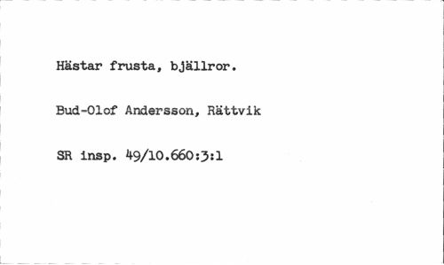 //// Hästar frusta, bjällror. Bud-Olof Andersson, Rättvik SR insp. 49/10.660:3:1 ////