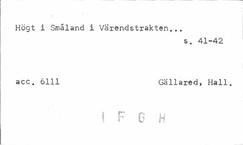 //// Högt i Småland i Värendstrakten... //// s. 41-42 //// acc. 6111 Gä11ared, Hall. //// ! F G H ////