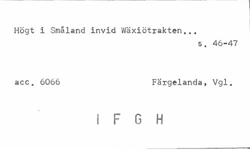 //// Högt i Småland invid Wäxiötrakten,.. //// s. 46-47 //// acc. 6066 Fäxgelanda, Vgl. //// i F G H ////