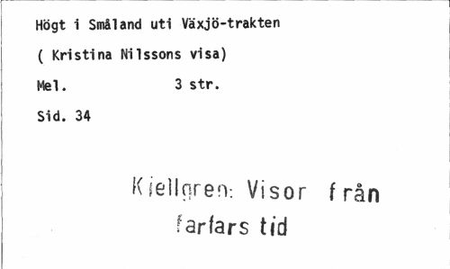 //// Högt i Småland uti Växjö-trakten ( Kristina Nilssons visa) Mel. 3 str. //// Sid. 34 //// Kielloren-. Visor från farfars tid ////