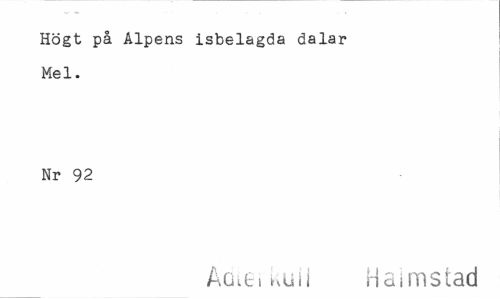 //// Högt på Alpens isbelagda dalar //// Mel. //// Nr 92 //// ÄGiti ku i i Haimstad ////