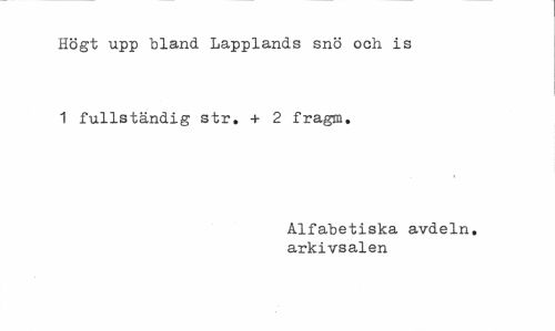 //// Högt upp bland Lapplands snö och is 1 fullständig str. + 2 fragm. //// Alfabetiska avdeln. arkivsalen ////