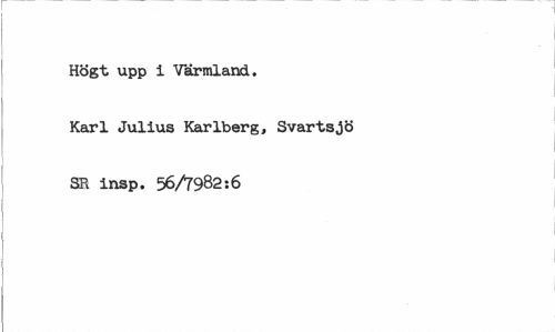 //// Högt upp i Tärmland. //// Karl Julius Karlberg, Svartsjö //// SR insp. 56/7982:6 ////