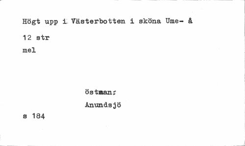 //// Högt upp i Västerbotten i sköna Ume- å //// 12 str mel //// östman? Anundsjö //// s 184 ////