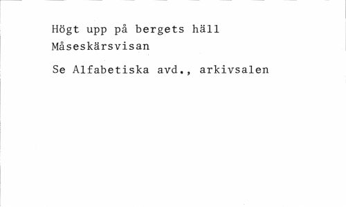 //// Högt upp på bergets häll Måseskärsvisan //// Se Alfabetiska avd., arkivsalen ////