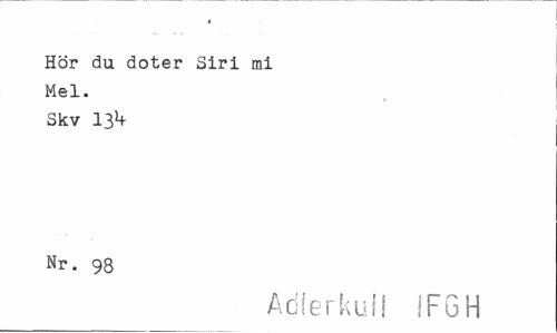 //// I //// Hör du doter Siri mi //// Mel. //// Skv 13^ //// Nr. 98 //// Adlerkuii 1FGH ////